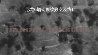 一、裂紋支化及終止。尼龍6及橡膠等增韌劑共混物在沖擊力作用下基體出現(xiàn)裂紋,裂紋在的擴(kuò)展過(guò)程中產(chǎn)生分支,尖端遇到橡膠而終止,阻礙裂紋進(jìn)一步轉(zhuǎn)化為裂縫,從而提高材料的韌性。