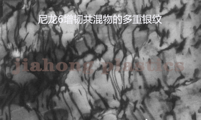 二、多重銀紋機(jī)理。尼龍6增韌橡膠共混體系中,橡膠粒子起應(yīng)力集中的作用,在與應(yīng)力方向垂直的赤道附近受力較大,引發(fā)銀紋的產(chǎn)生。銀紋的擴(kuò)展過(guò)程中遇到別一個(gè)橡膠粒子或銀紋就會(huì)終止。大量銀紋的存在并吸收了沖擊能,共混物韌性有了大幅度提高。