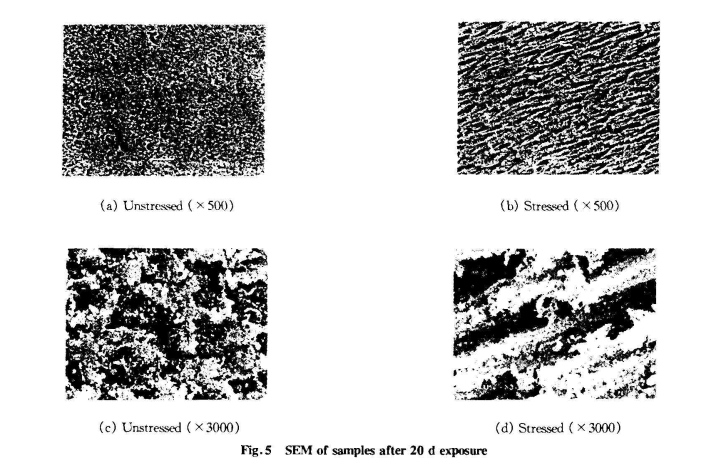 綜上所述,應力通過引發PVC材料聚集態結構的變化—— 取向和微裂紋的產生,交聯度的降低,使氧化反應加劇,脫HC1反應區域的集中,從而導致PVC材料的紫外光老化性能發生改變。