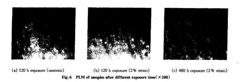③表面裂紋的生成:從反射偏光透鏡中觀察發現,應力作用下,PVC在光老化過程中表面有許多微裂紋生成(Fig.6b),這為氧順利進入材料內部打開了通道。