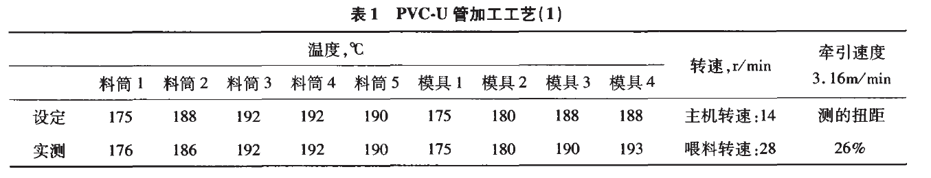 擠管生產中,管材的各項機械物理性能均與擠管過程的工藝控制有關。合理的工藝設置方能使PVC混合料形成具有一定塑化度并且塑化均勻的熔體,因而管材的縱向回縮率也與工藝控制有關。筆者從以下兩方面論述。
